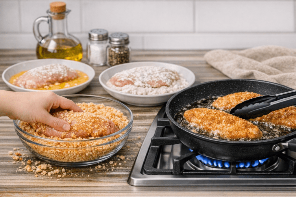 • Consejo adicional: Para obtener un pollo empanizado fácil y crujiente, use pan rallado de buena calidad o mezcle panko con especias al gusto. Esta combinación agrega texturas y sabores que mejoran la experiencia de la receta.